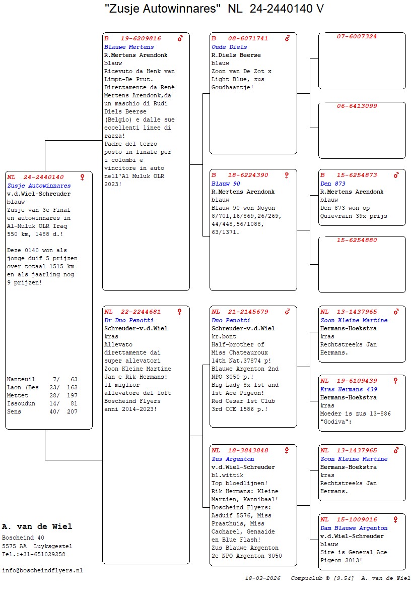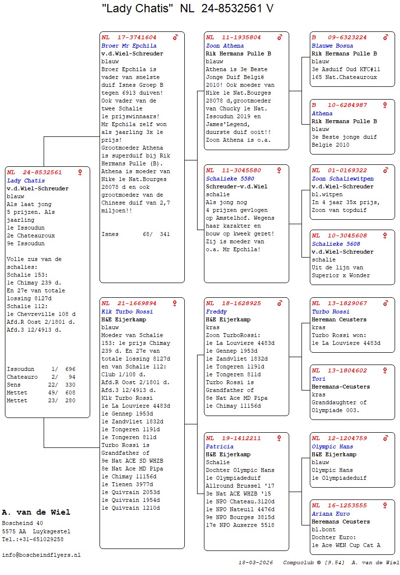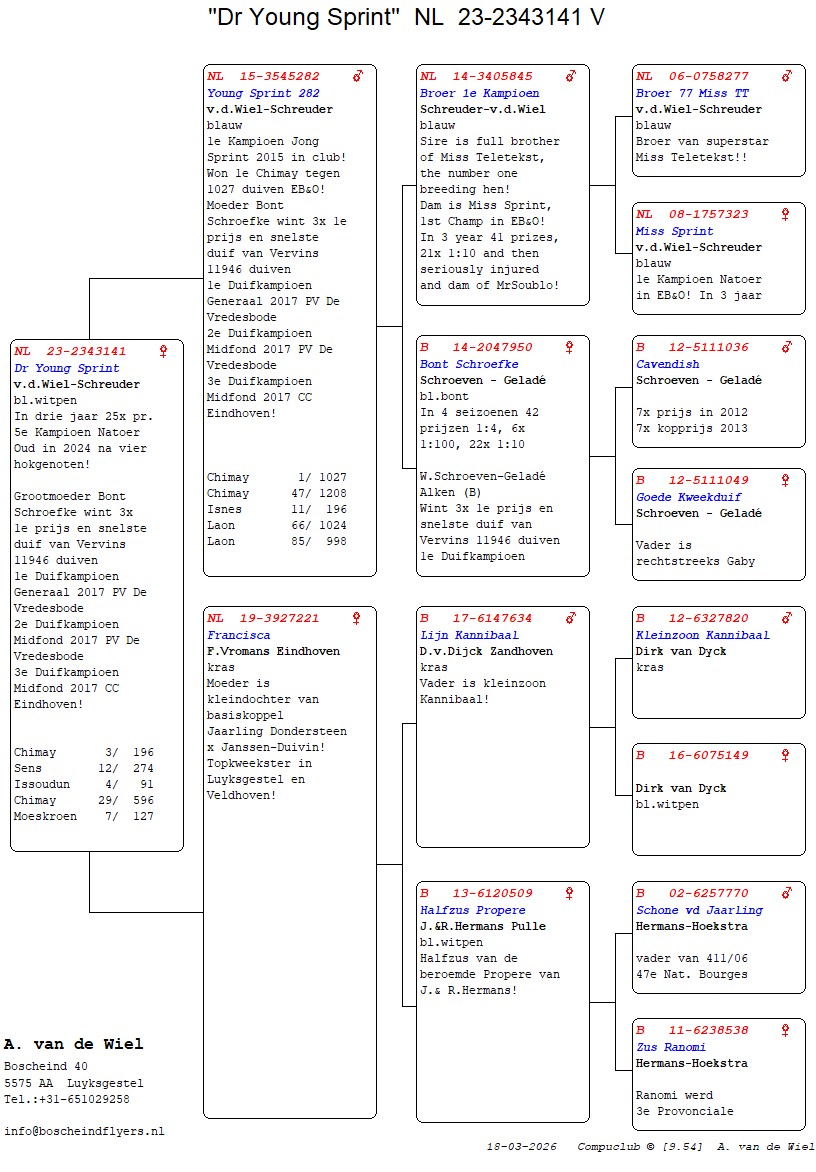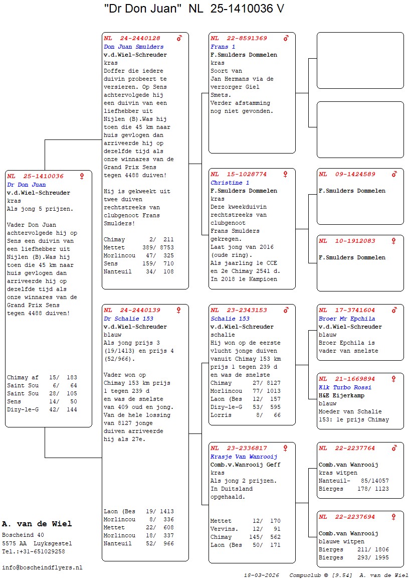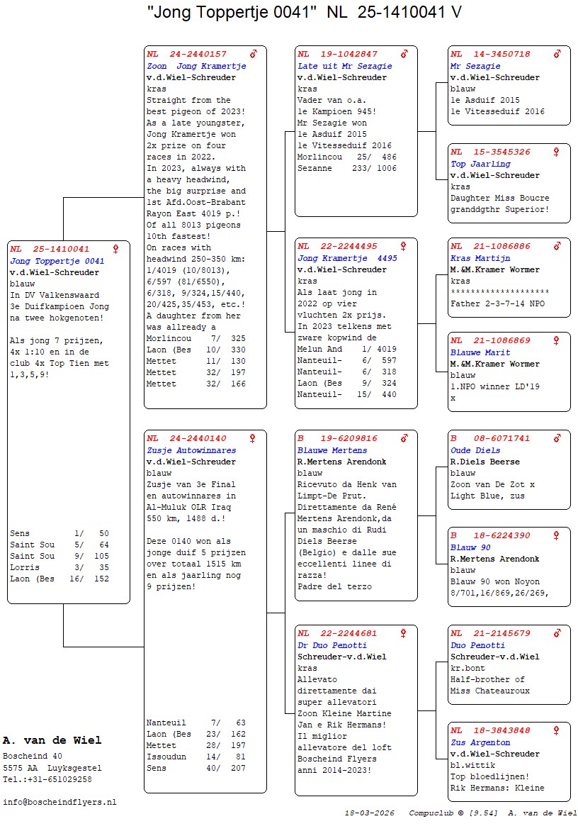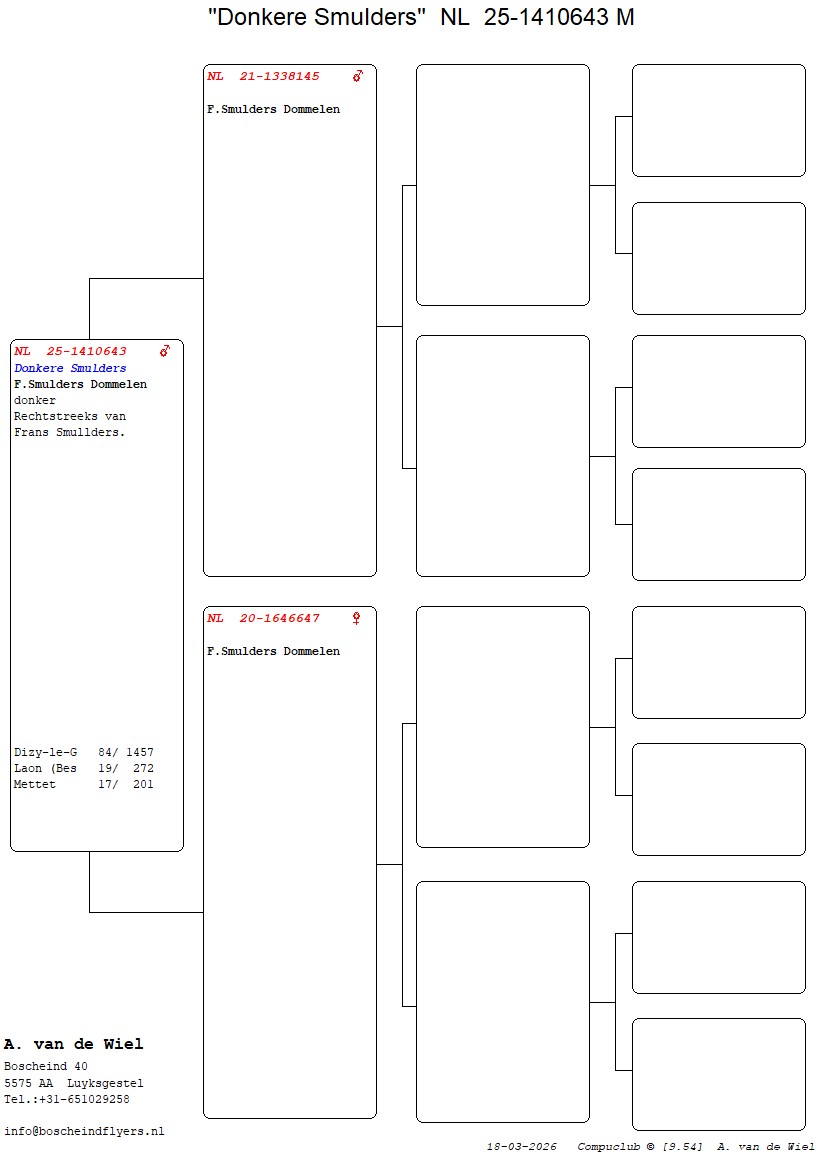 | Plc | Ringnummer | Aankomsttijd | Geslacht | Snelheid M/Min | Stamkaart | | 1 | 3/9438945 | 09:23:36 | V | 1405.502 |  | |