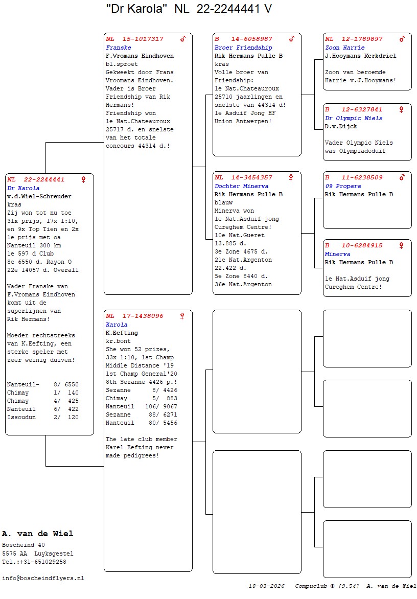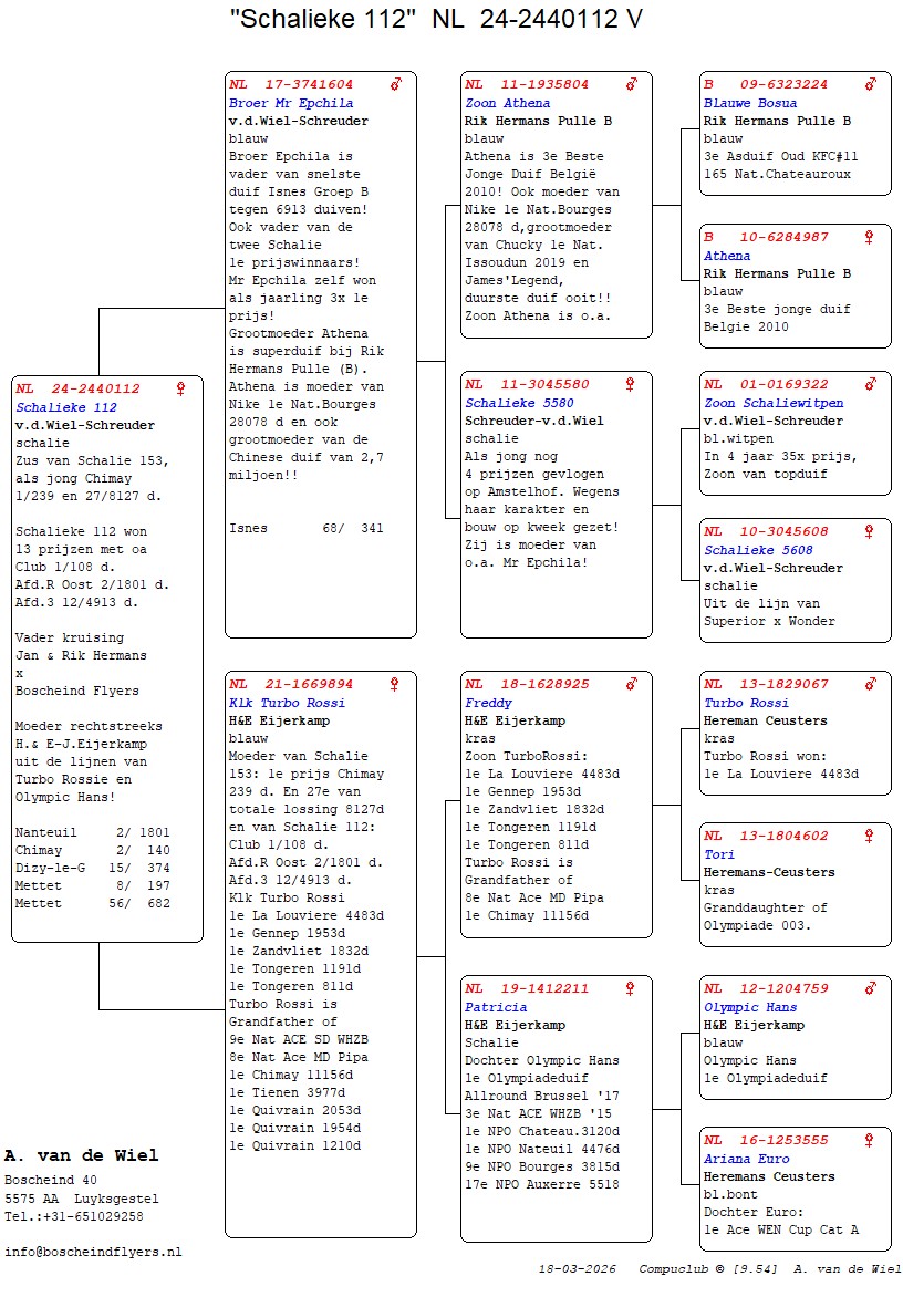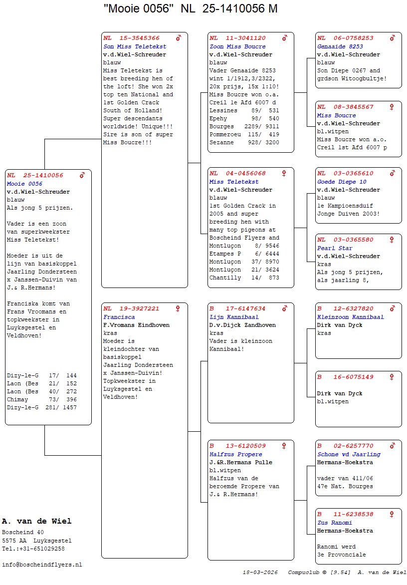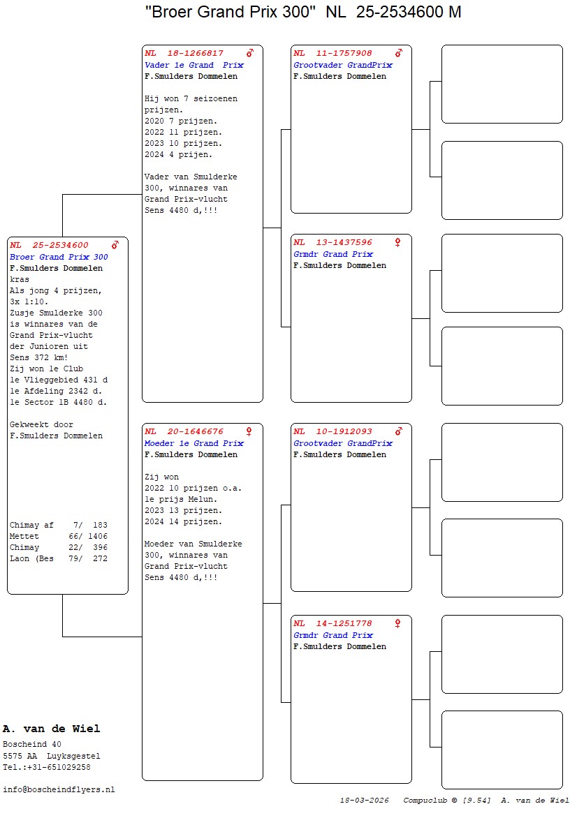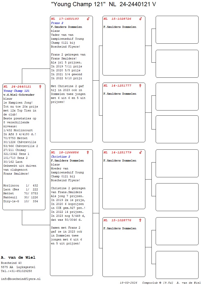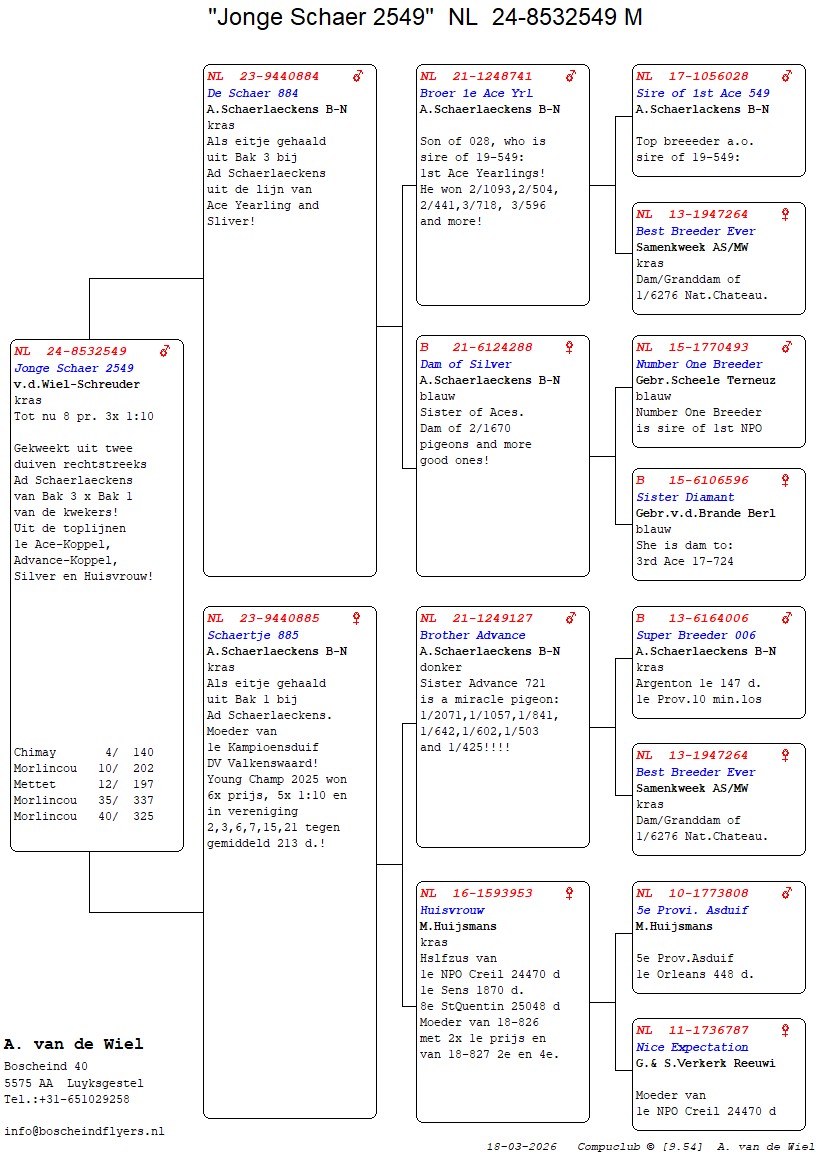 | Plc | Ringnummer | Aankomsttijd | Geslacht | Snelheid M/Min | Stamkaart | | 1 | 3/9438945 | 09:23:36 | V | 1405.502 |  | |
